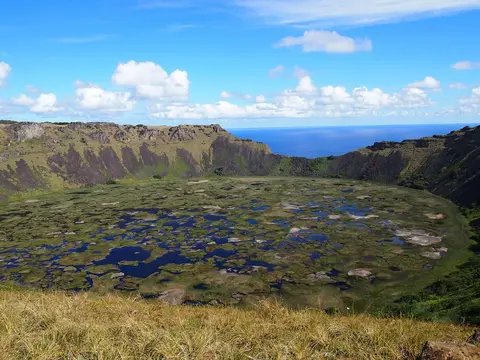 Dieser Ausflug führt zum erloschenen Vulkan Rano Kau mit seinem Kratersee. Hier haben Sie an zwei Aussichtspunkten einen atemberaubenden Ausblick über die gesamte Insel sowie auf den Kratersee. Anschließend fahren Sie zum Zeremoniendorf Orongo. Hier fanden die Rituale um den Vogelmannkult und der damit verbundene Wettbewerb statt. Sie werden hier die Petroglyphen und Orongo-Häuser besuchen und den Ausblick auf die vorgelagerten Inseln Motu Nui, Motu Iti und Motu Kao Kao genießen können. Nächstes Ziel ist der nicht restaurierte Ahu Vinapu, der mit solcher Präzision erbaut wurde, dass es an die Prä-Inka-Bauten erinnert. Letzter Stopp ist die Höhle Ana Kai Tangata mit ihren Malereien (nur von außen zu sehen, Besichtigung ist klimaabhängig).