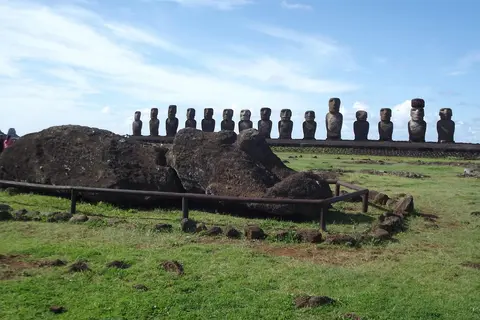 Sie fahren ins Inselinnere zum restaurierten Ahu Akivi mit seinen sieben wiederaufgestellten Moais, die laut der Legende die sieben Botschafter des Königs Hotu Matua darstellen. Anschließend besuchen Sie den nicht restaurierten Ahu in Hanga Poukura. Vorletzter Stopp ist der Puna Pau Krater, wo die Kopfbedeckungen der Moais, die Pukaos, hergestellt wurden. Zum Abschluss der Halbtagestour besuchen Sie die Zeremonienstätte Tahai in der Nähe des Ortes Hanga Roa. Hier haben Sie die Gelegenheit drei restaurierte Ahus zu sehen und den einzigen Moai, dem seine Augen wiedereingesetzt wurden. In Tahai wurden außerdem Reste von Hare Pänga Bootshäuser), Hare Moa (Hühnerhäuser) und eine enorme Bootsrampe restauriert.