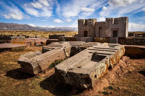 - Tiwanaku: Mystische Ruinenstätte nahe des Titicacasees und eines der bedeutendsten präkolumbischen Zentren der Anden - monumentale Steintore, rätselhafte Reliefs und jahrtausendealte Zeremonialplätze erzählen von einer hochentwickelten Kultur voller spiritueller Symbolik.
