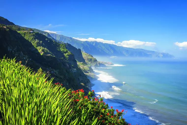 Die Nordwestküste präsentiert sich von ihrer ursprünglichsten und wildesten Seite: Steil abfallende Klippen, raue Felsformationen und die unermüdliche Brandung des Atlantiks bilden ein beeindruckendes Naturschauspiel, das die besondere Schönheit Madeiras eindrucksvoll hervorhebt.