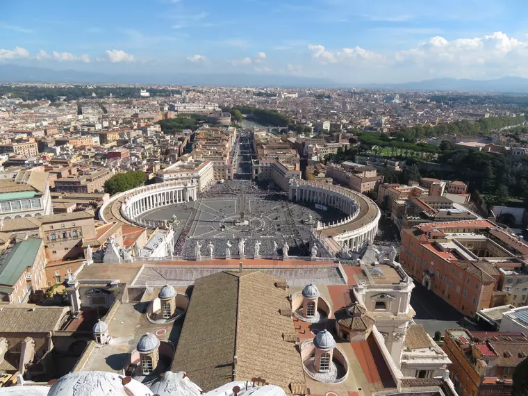 Im Anschluss besichtigen Sie den monumentalen Petersdom, eine der größten Kirchen der Welt. Die heutige Basilika wurde ab 1506 errichtet und 1626 geweiht; sie steht über dem mutmaßlichen Grab des Apostels Petrus. Nach der Innenbesichtigung können Sie über den Petersplatz mit seinen eindrucksvollen Kolonnaden von Gian Lorenzo Bernini schlendern.